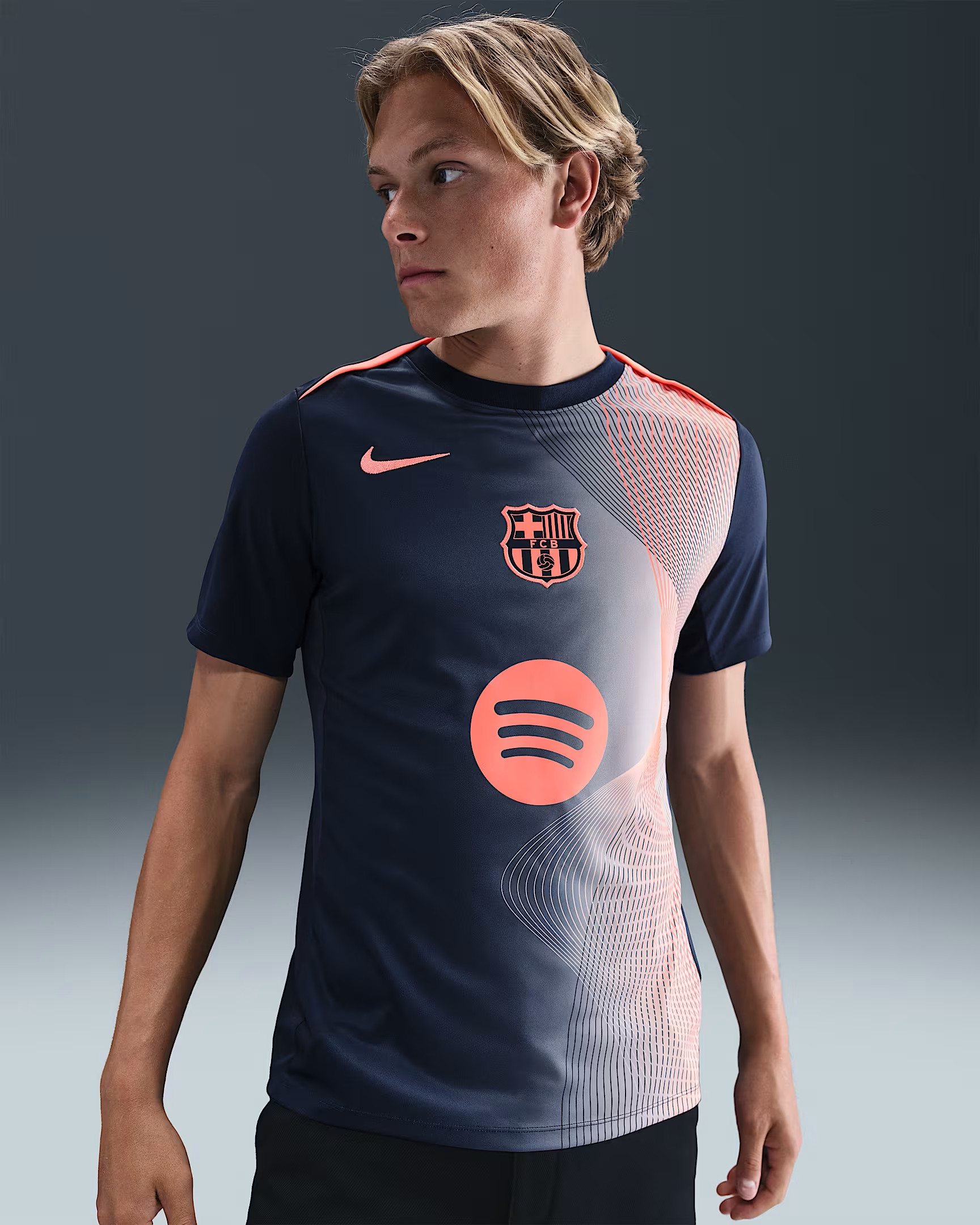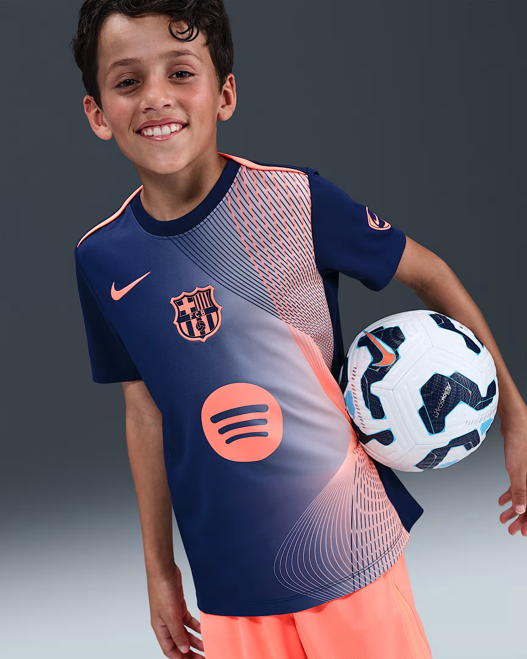 Maillot d'echauffement Total90 FC Barcelone 2025-2026 - Bleu Marine/Orange - Enfant