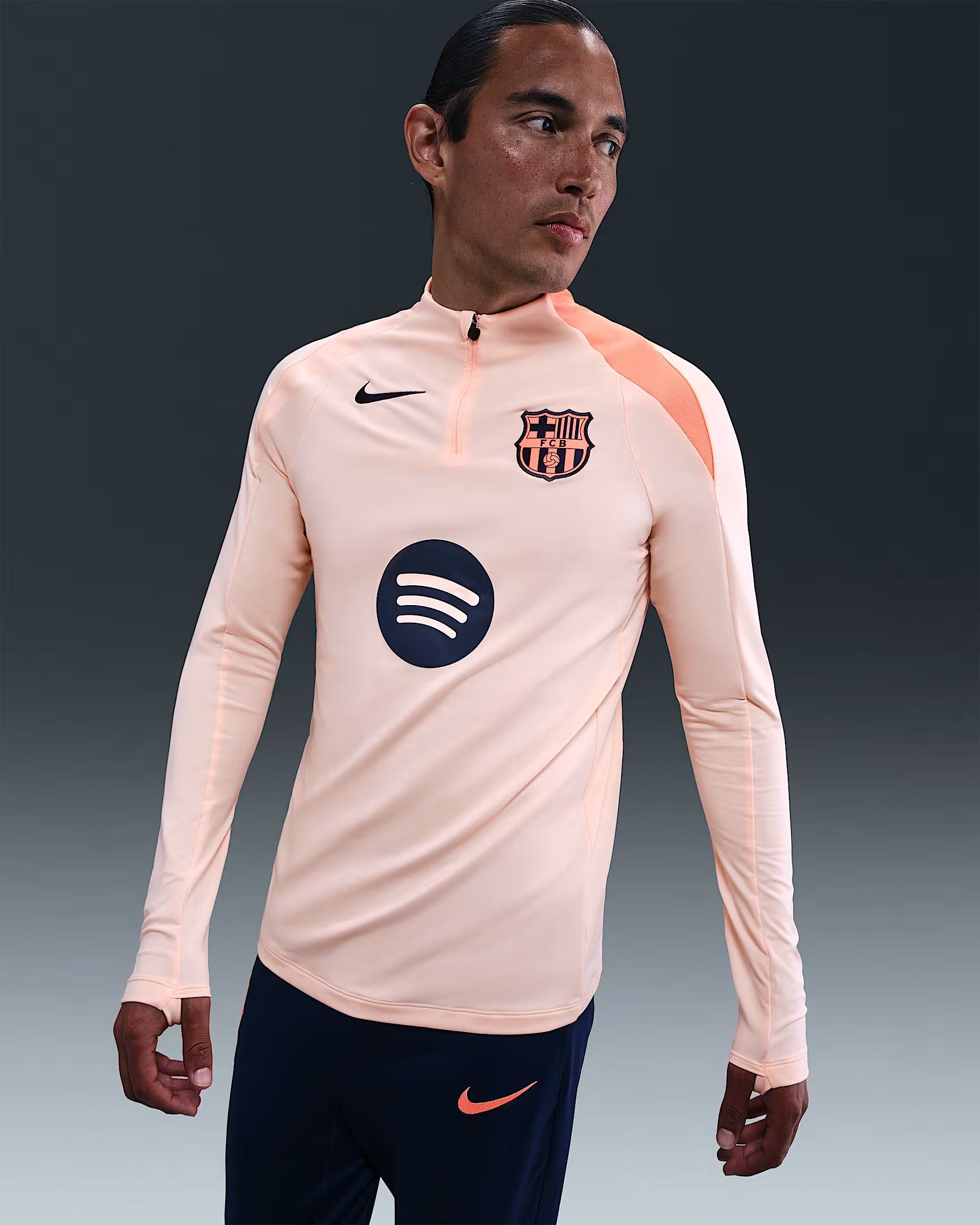 Maillot d'echauffement Total90 FC Barcelone 2025-2026 - Bleu Marine/Orange
