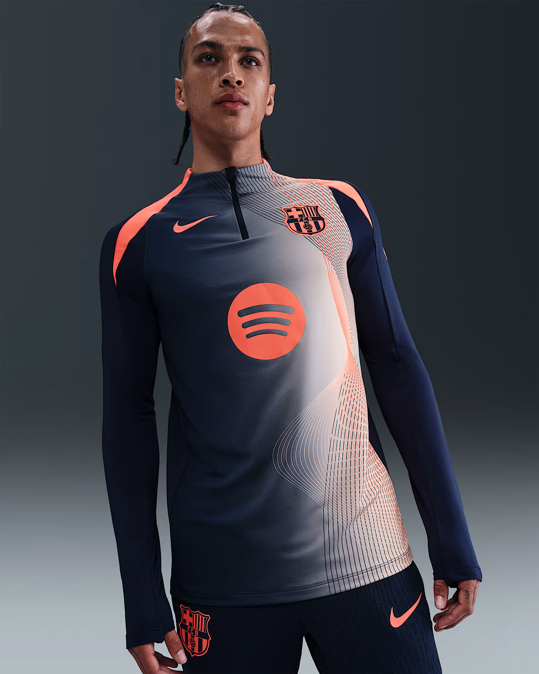 Veste d'Entraînement Total90 FC Barcelone 2025-2026 - Bleu Marine/Orange