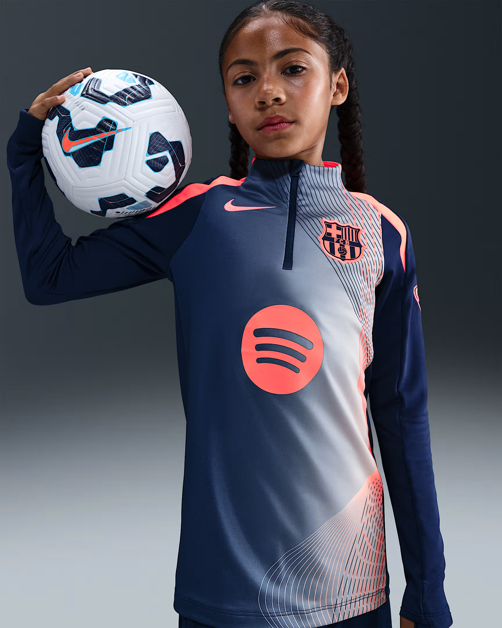 Haut d'echauffement Total90 FC Barcelone 2025-2026 - Bleu Marine/Orange - Enfant