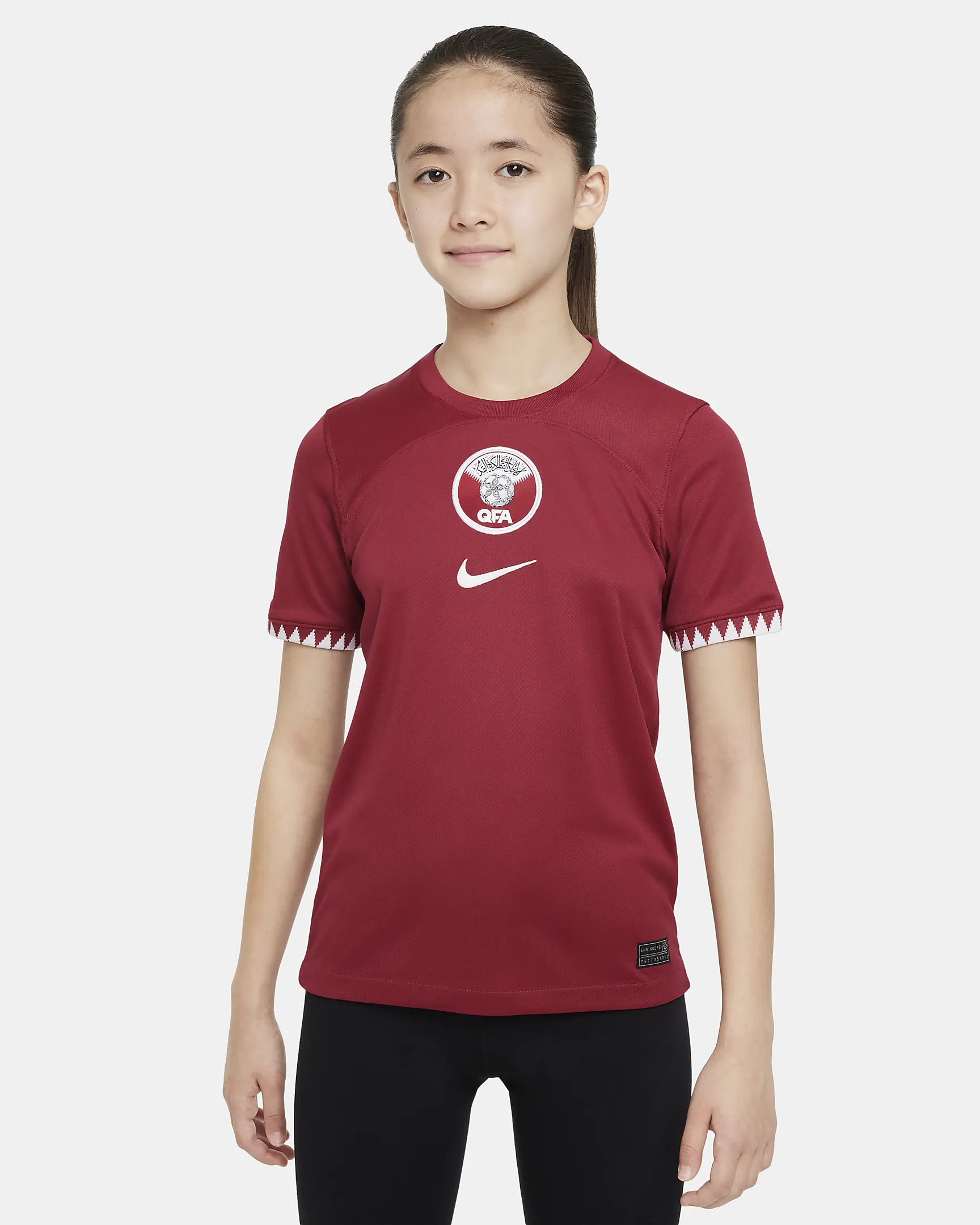 Commandez le maillot Nike Qatar Away 2022-2023 pour enfants ici. Vous pouvez désormais commander ce maillot de football pour les enfants de 6, 7, 8, 9, 10, 11, 12, 13, 14 et 15 ans. Vous pouvez commander ce maillot de football dans les tailles enfants suivantes : 128, 140, 152, 164 et 176. Dans ce maillot de football, l'équipe nationale de football du Qatar joue les matchs à l'extérieur de la Coupe du monde 2022 et d'autres matchs internationaux au cours de la période 2022-2023.